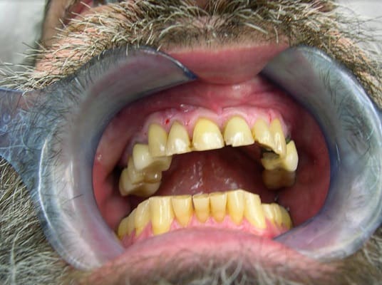 אדם בן 55 , חזית הפה לא יפה.